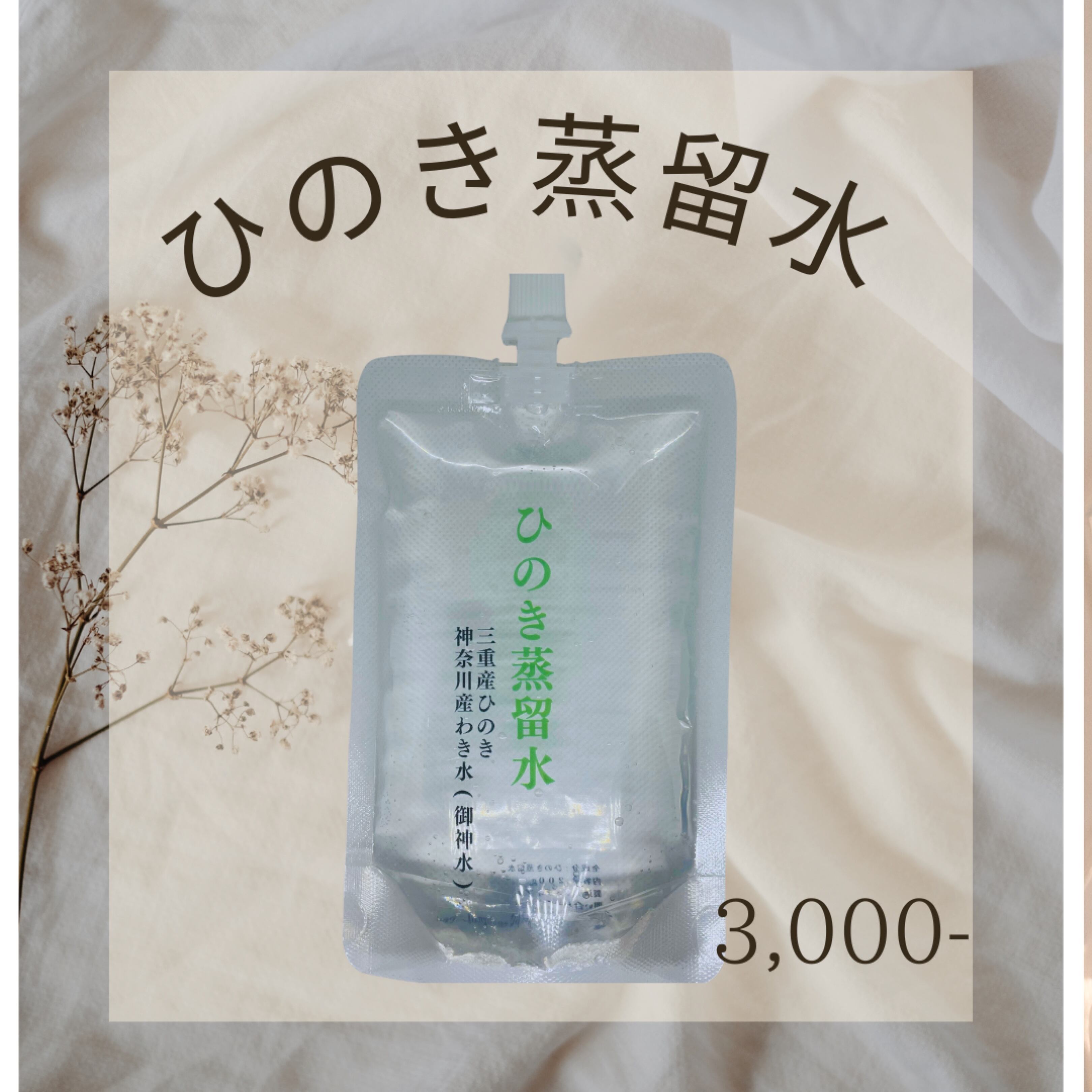 三重県産の天然ひのきと、神奈川県の御神水として祀られている湧水を使用した特別な清き水(きよきみず)。